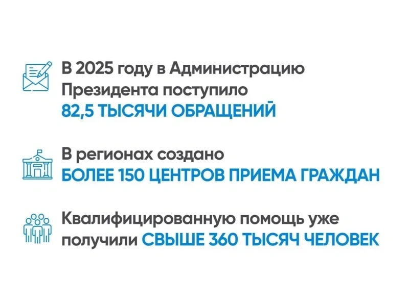 В 2025 году в администрацию президента поступило 82,5 тысячи обращений от граждан.