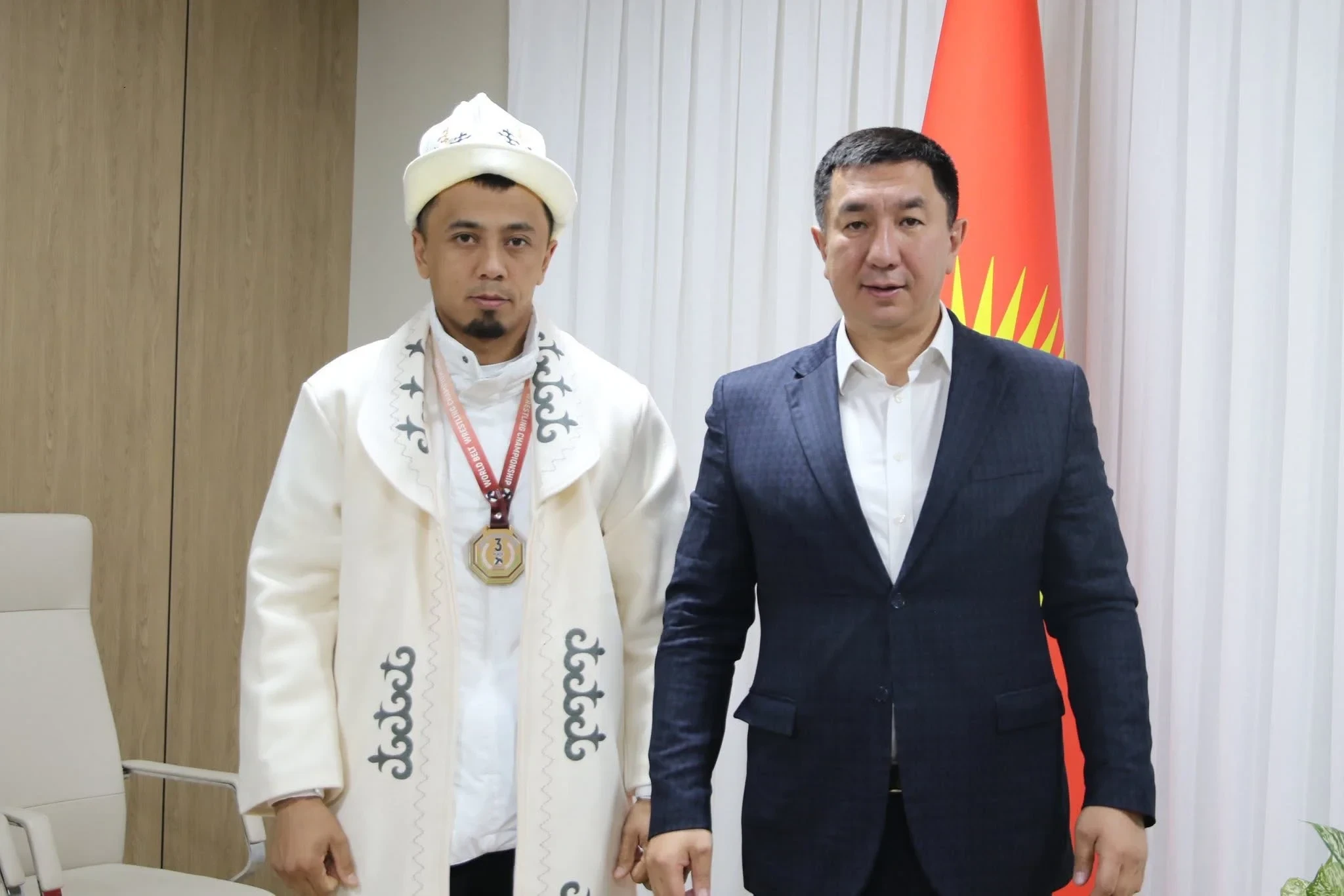 Текебаев подчеркнул, что достижения данных спортсменов на международной арене являются следствием их самоотверженного труда и преданности спорту. Он отметил значимость поддержки молодежи и вручил спортсменам памятные подарки.