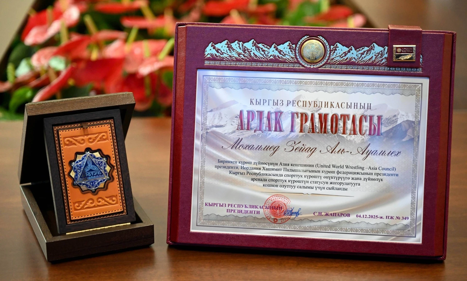 В завершение встречи президент Садыр Жапаров наградил Ненада Лаловича орденом «Достук», а Мохаммеда Аль-Авамлеха — Почетной грамотой Кыргызской Республики за их значительный вклад в развитие спортивной борьбы в стране и повышение ее статуса на мировой арене. В ответ Ненад Лалович вручил Жапарову орден UWW.