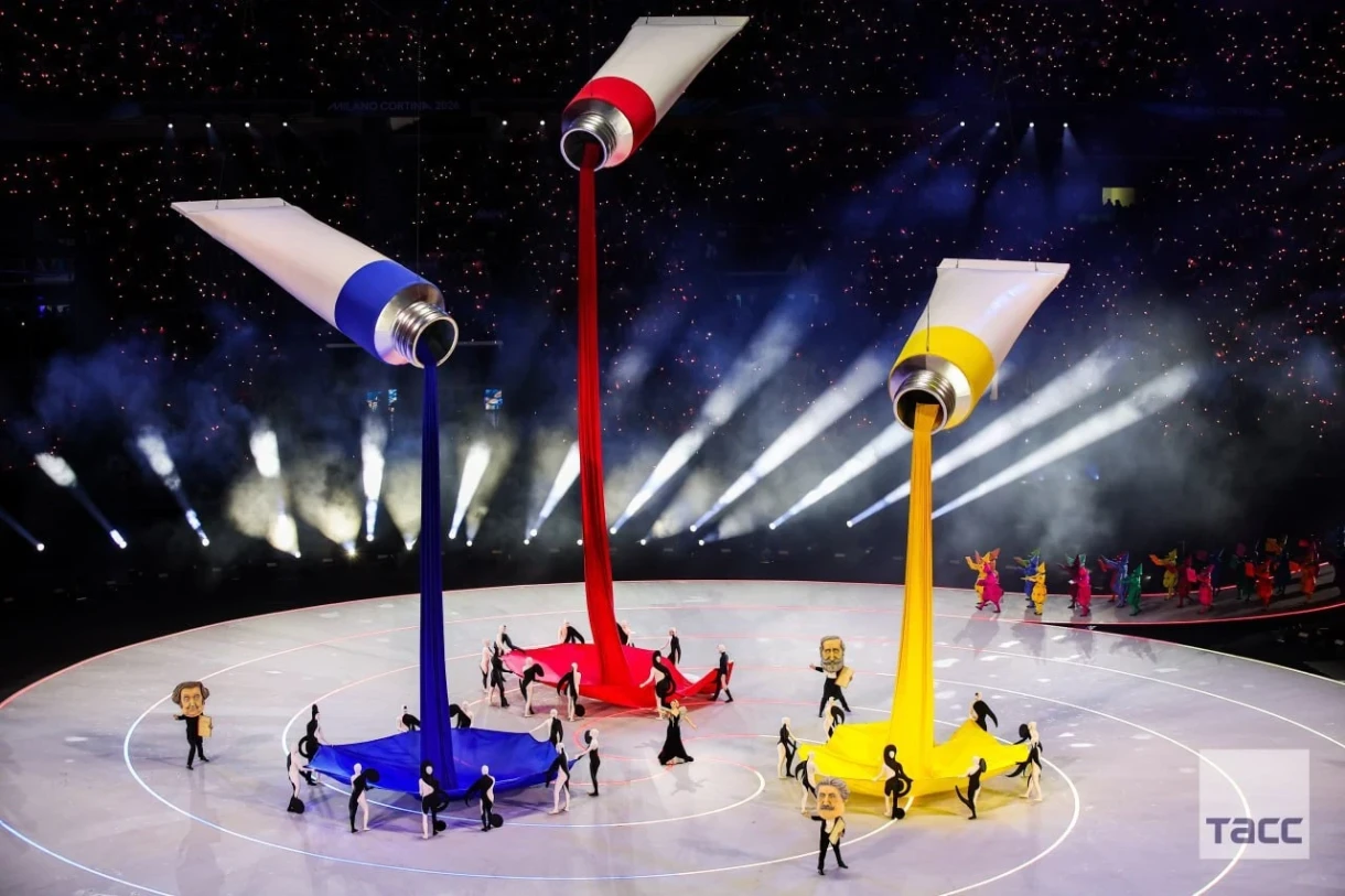 На стадионе «Сан-Сиро» представление, посвященное культурному наследию Италии, прошло с яркими моментами. Олимпийский огонь был зажжен в двух чашах: главные факелоносцы в Милане — горнолыжники Альберто Томба и Дебора Компаньони, а в Кортине-д’Ампеццо эту честь получила горнолыжница София Годжа.