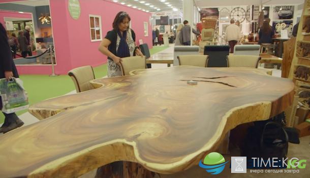 Дизайнерским открытием в оформлении интерьера на выставке «Идеальный дом», которая продлиться до 9 апреля, стал стол, выполненный из среза ствола огромной акации стоимостью в 10 тысяч фунтов стерлингов.