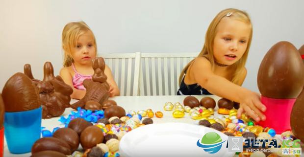 Родители сестричек купили очень много различных сладостей: шоколадные яйца, кролики, конфеты, пряники… Все это предстояло Николь и Алисе разбить, чтобы найти игрушку.