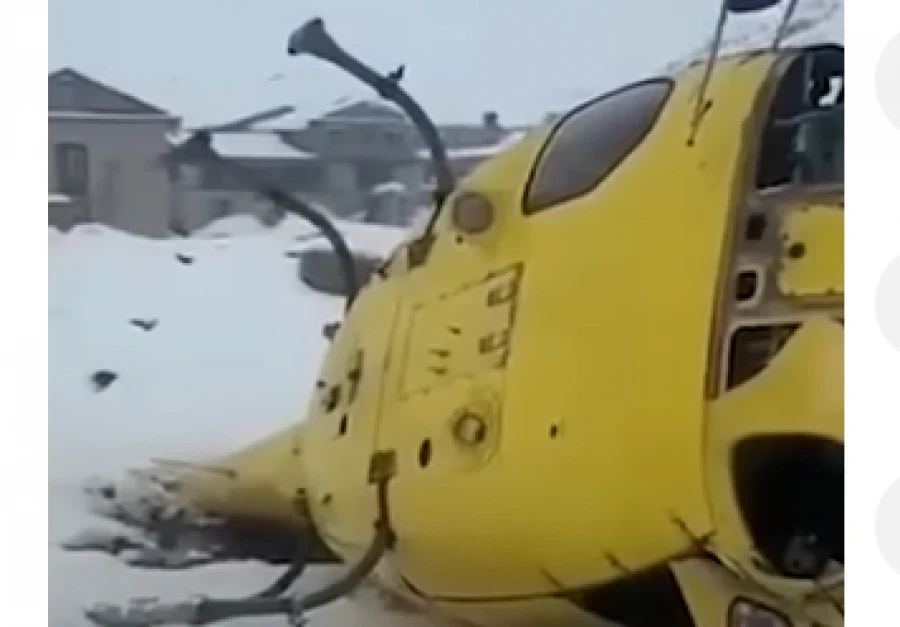 Во время приземления на снежный склон вертолет начал скользить и перевернулся.