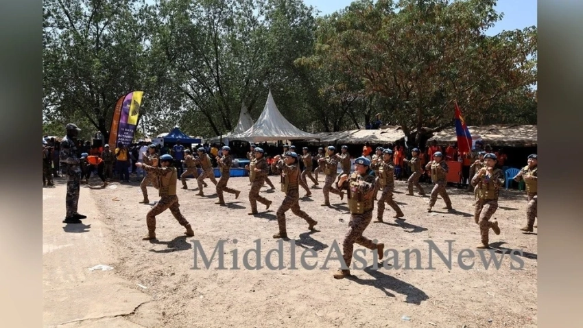 В рамках мероприятия 25 женщин, представляющих 15-й мотострелковый батальон Вооруженных сил Монголии, участвующих в миротворческой операции МООНЮС, продемонстрировали навыки рукопашного боя.