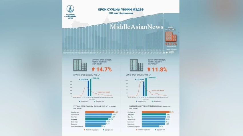 На фоне 2024 года, самый значительный рост цен на старые квартиры произошел в районе Хан-Уул — на 18.8%, в то время как в Баянгол увеличение составило лишь 10.2%.