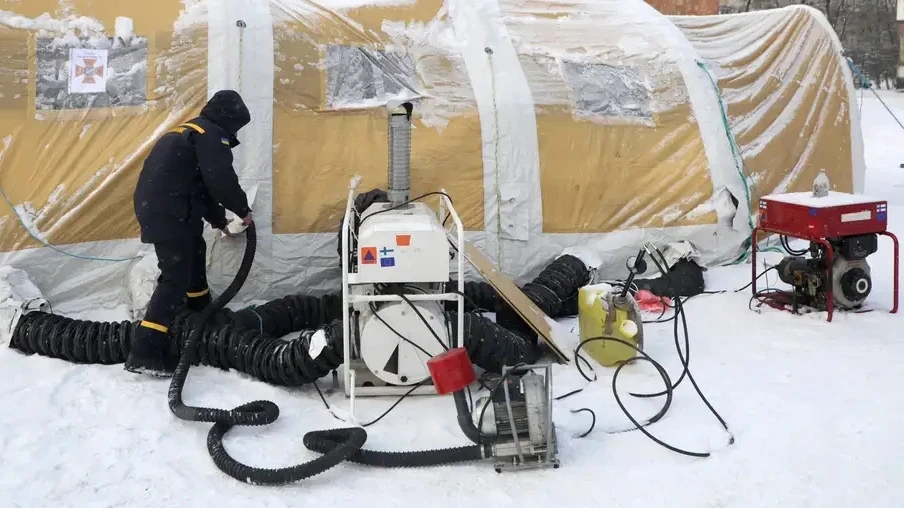 Отапливаемая палатка для помощи горожанам в Киеве. Фото Yuliia Ovsiannikova / Avalon / IMAGO.