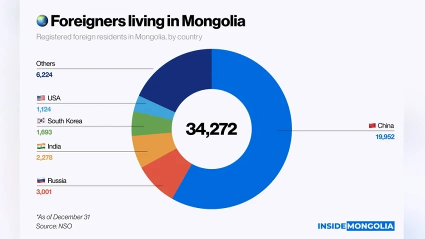 Согласно данным InsideMongolia, в Монголии на конец 2025 года проживает более 34 000 иностранцев из 136 стран. Увеличение числа официально зарегистрированных иностранных граждан на 7.4% по сравнению с предыдущим годом свидетельствует о стабильной тенденции роста.